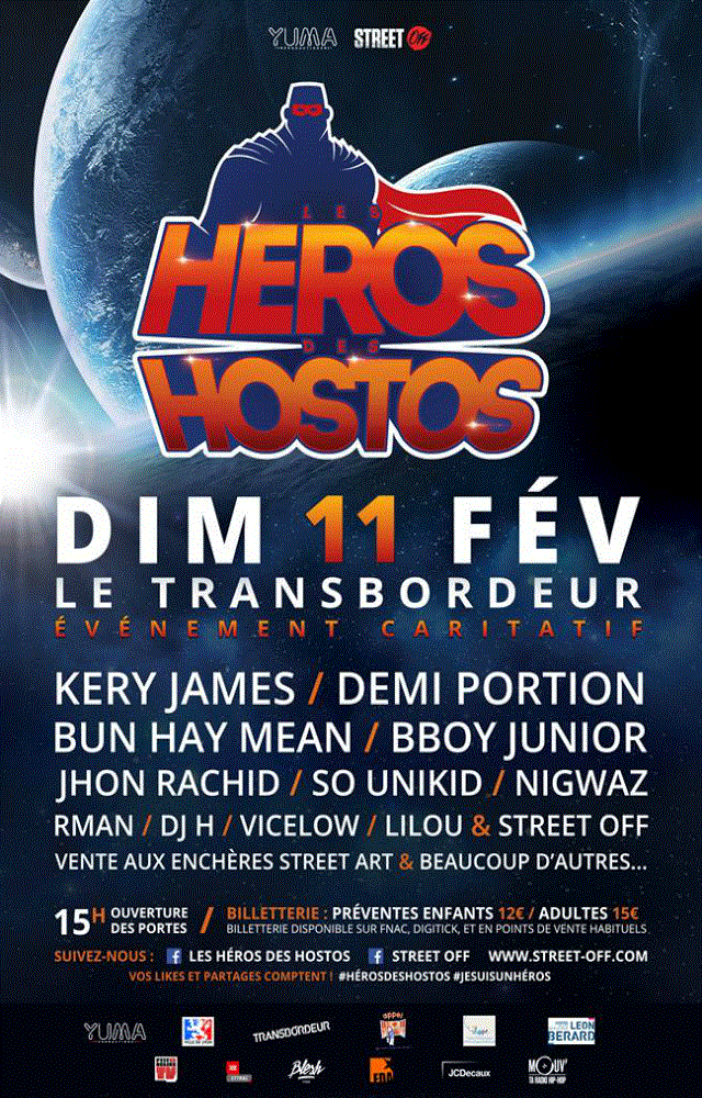 Venir en aide aux enfants malades avec un concept original mêlant plusieurs disciplines issues de la culture urbaine ? Voilà ce que propose l’association Street Off avec son évènement Les Héros des Hostos, qui aura lieu ce dimanche 11 février au Transbordeur de Villeurbanne. La région Lyonnaise se prépare à recevoir du lourd, entre danseurs, rappeurs et agitateurs en tout genre unis pour une même cause !