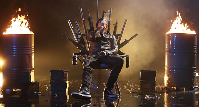 On retrouve ainsi Tonton la découpe dans un décor légèrement remanié qui n’est pas sans rappeler la série culte Game of Thrones. Posé sur un trône confectionné à l’aide de plusieurs armes létales, le rappeur enchaîne les phrases coups de poing sans jamais ralentir le rythme. Le visuel est judicieux et se prête totalement à ce puissant track qui ferme le projet à merveille.